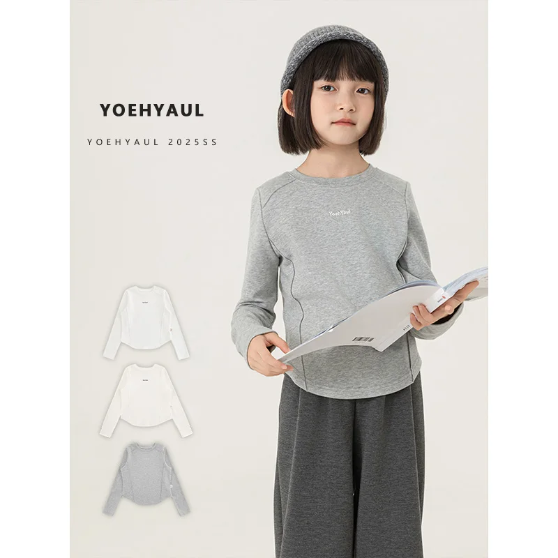 YOEHYAUL CD1904 Wholesale Cotton Girls Plain t Shirt for Kids and Teens From Age 3 to 14 Crew Neck Kids White Long Sleeve Shirt